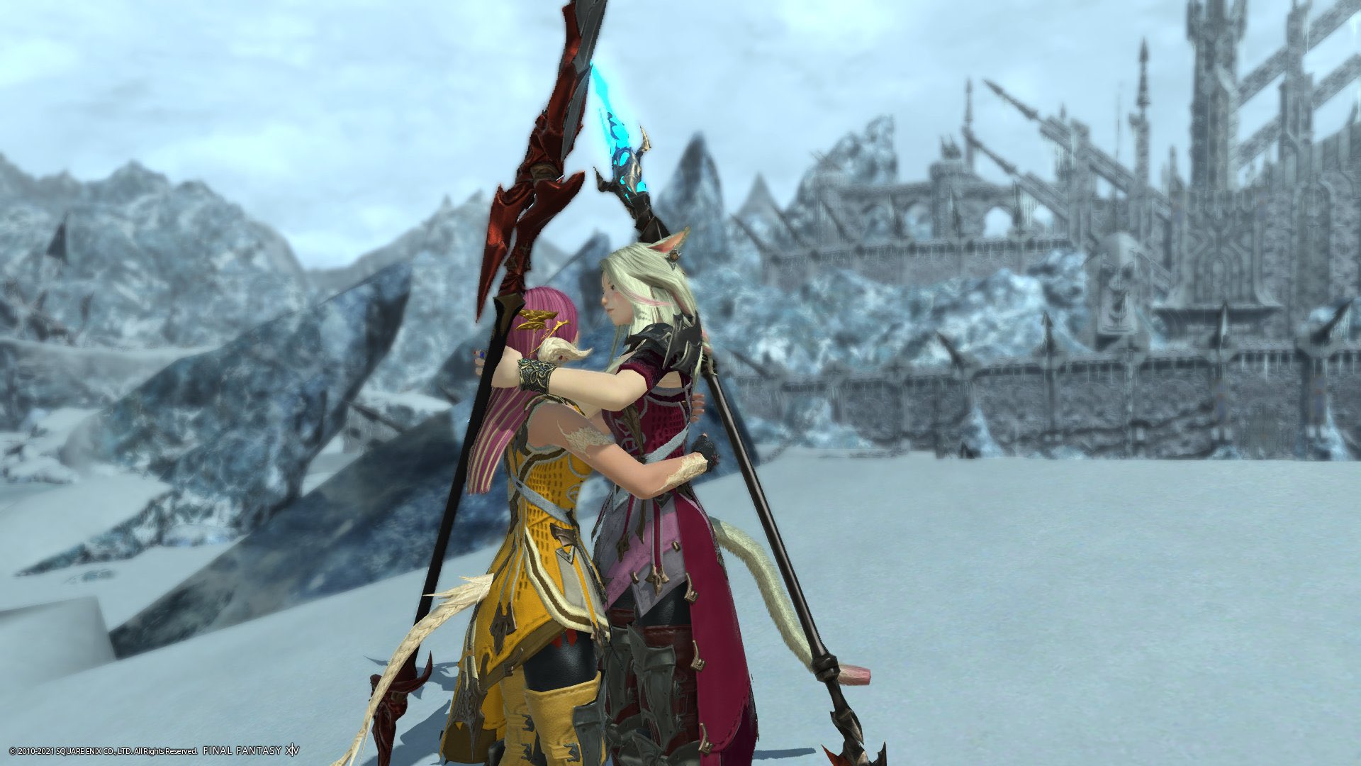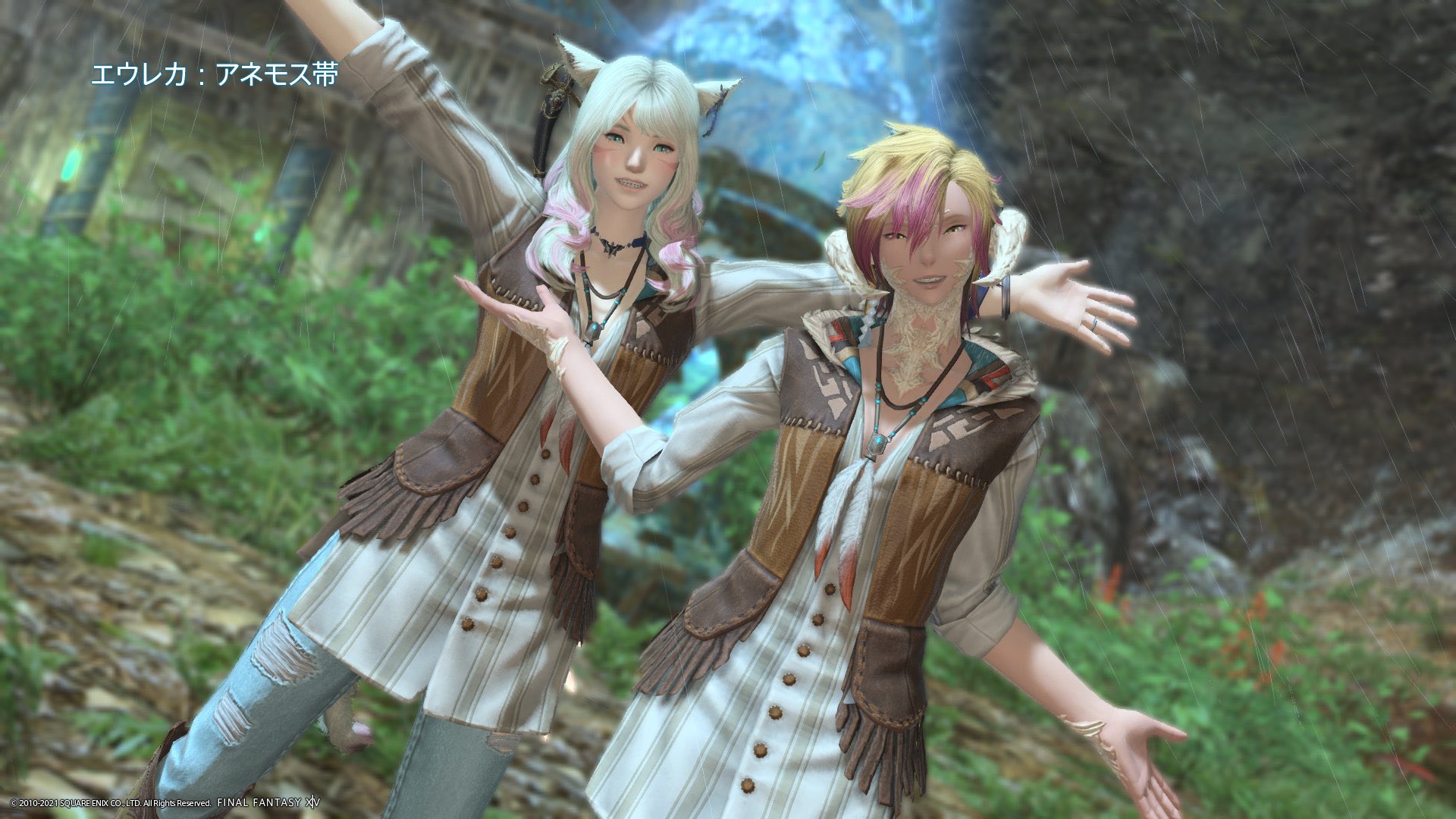 最初のアネモス編のエーテが開放されたときに一緒に撮りました。ピースラヴァ―装備ありがとう!(笑)